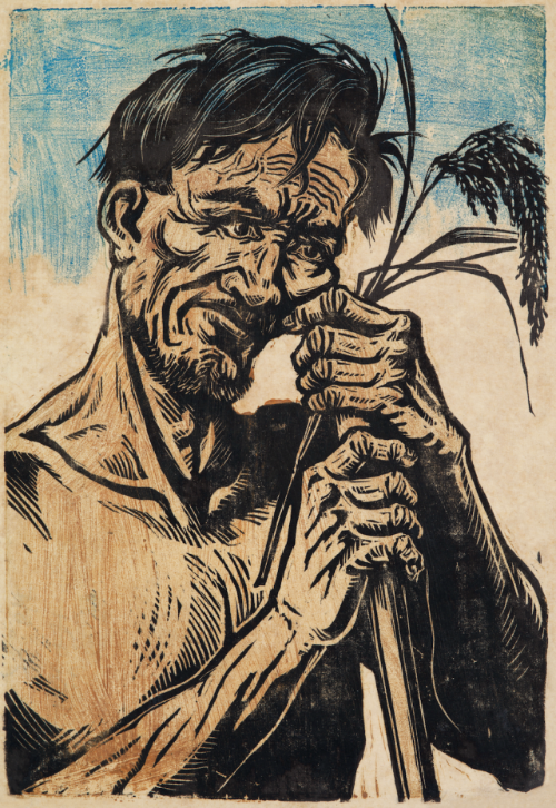 苦笑 李樺 23x15.5cm 套色版畫 1940年 廣東美術館藏