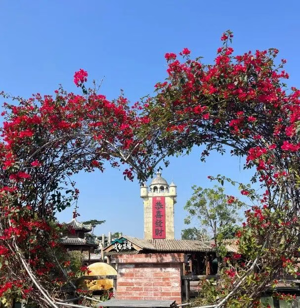 近日,持續(xù)的晴好天氣讓開平的暖冬綠意盎然。赤坎華僑古鎮(zhèn)里三角梅、炮仗花、鐵冬青等花木競相綻放,絢麗繁花與古樸的碉樓、騎樓相映成趣,勾勒出僑鄉(xiāng)獨有的冬日浪漫,更成為游客逃離喧囂、享受慢生活的治愈之地。