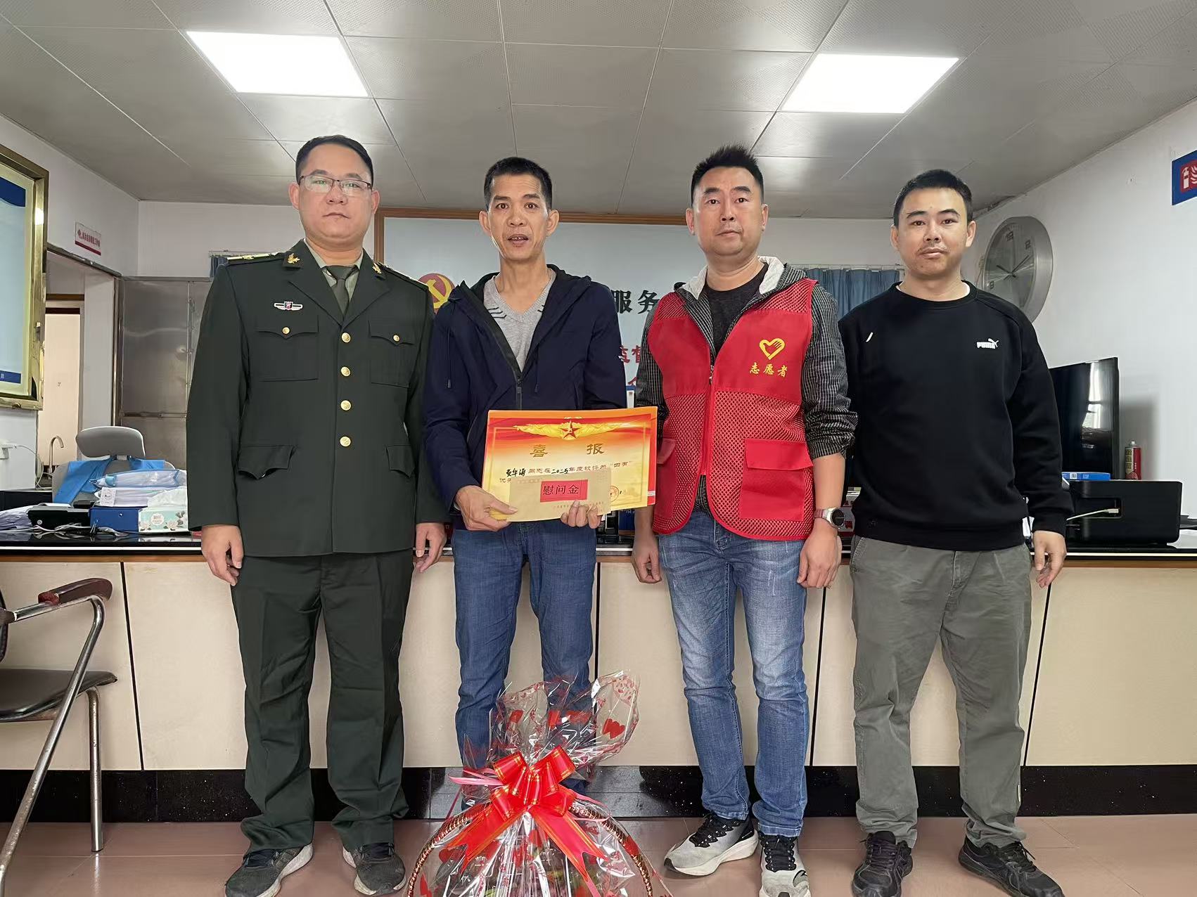 新春伊始,喜訊頻傳。為進一步弘揚擁軍優屬光榮傳統,營造“一人參軍、全家光榮”的濃厚社會氛圍,赤坎鎮組織開展為榮立“四有”優秀士兵榮譽稱號的軍人家庭送喜報活動。2月11日,赤坎鎮武裝部、退役軍人服務站及相關村(社區)負責人組成“報喜團”,將滿載榮譽的喜報和慰問品、節日祝福送到軍屬家中,讓軍人軍屬共享榮光時刻。