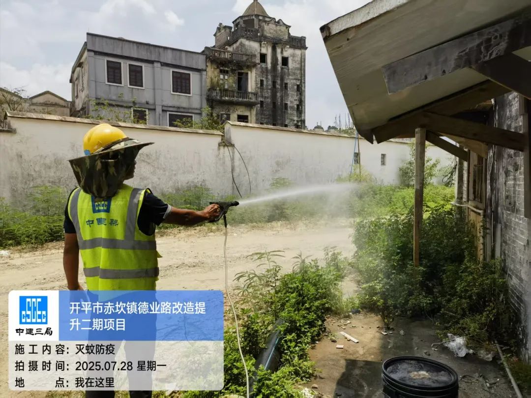 赤坎沙溪市場全面消殺滅蚊 開平市赤坎鎮德業路改造提升二期項目建筑工地周邊全面消殺滅蚊 三、開展環境衛生整治 深入組織鎮村干部開展環境衛生整治,清理房前屋后垃圾雜物,翻盤倒罐清理積水(尤其注意清理雨天后廢棄瓦罐、泡沫箱、飯盒和廢棄輪胎的積水),噴藥消殺滅蚊。
