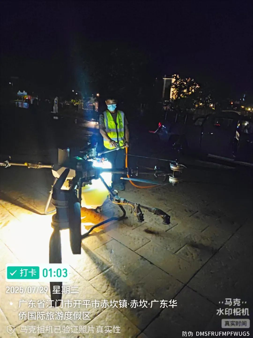 新建村開展環境衛生整治,噴藥消殺滅蚊 中廟村開展環境衛生整治,噴藥消殺滅蚊 南樓村開展環境衛生整治,噴藥消殺滅蚊 四、動員統一滅蚊消殺 根據市統一部署,動員廣大居民配合于7月28日18時一起在家中點燃蚊香、蚊片,赤坎華僑古鎮、開平不夜城(夢回開平-僑海華韻)等景區同時采取點燃蚊香、無人機噴灑滅蚊藥物等措施對古鎮及周邊場所進行滅蚊消殺。 居民們點燃蚊香進行滅蚊消殺 赤坎華僑古鎮進行滅蚊消殺 赤坎華僑古鎮無人機噴灑滅蚊藥物 五、廣泛宣傳防蚊知識 赤坎鎮組織印發宣傳海報400余張和橫幅25余條、錄制宣傳音頻發給個村(社區)開展防控登革熱、基孔肯雅熱知識宣傳,積極引導群眾全面清理衛生死角和積水環境,阻斷疾病傳播途徑,形成群防群控的強大合力。