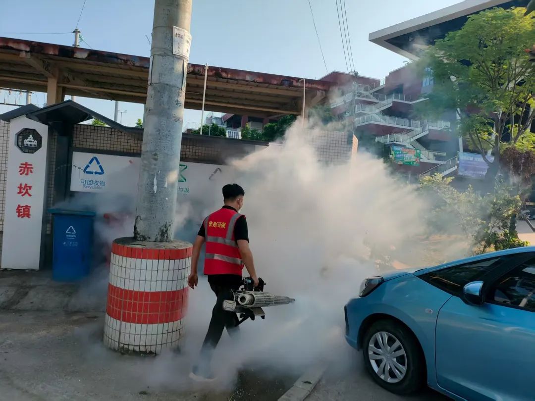 新建村開展環境衛生整治,噴藥消殺滅蚊 中廟村開展環境衛生整治,噴藥消殺滅蚊 南樓村開展環境衛生整治,噴藥消殺滅蚊 四、動員統一滅蚊消殺 根據市統一部署,動員廣大居民配合于7月28日18時一起在家中點燃蚊香、蚊片,赤坎華僑古鎮、開平不夜城(夢回開平-僑海華韻)等景區同時采取點燃蚊香、無人機噴灑滅蚊藥物等措施對古鎮及周邊場所進行滅蚊消殺。 居民們點燃蚊香進行滅蚊消殺 赤坎華僑古鎮進行滅蚊消殺 赤坎華僑古鎮無人機噴灑滅蚊藥物 五、廣泛宣傳防蚊知識 赤坎鎮組織印發宣傳海報400余張和橫幅25余條、錄制宣傳音頻發給個村(社區)開展防控登革熱、基孔肯雅熱知識宣傳,積極引導群眾全面清理衛生死角和積水環境,阻斷疾病傳播途徑,形成群防群控的強大合力。