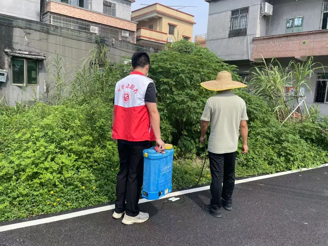 塘美村開展環境衛生整治,噴藥消殺滅蚊