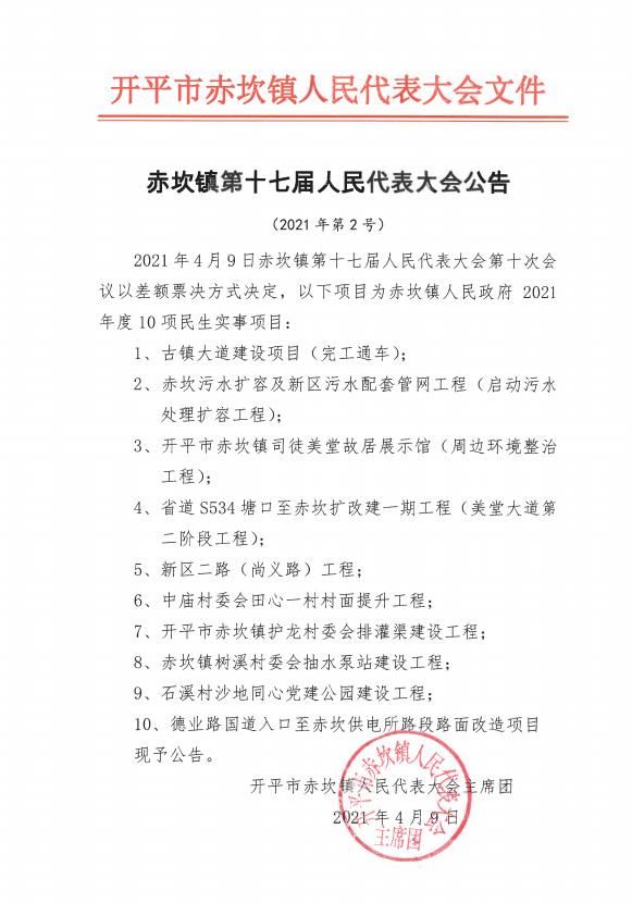 赤坎鎮第十七屆人民代表大會公告