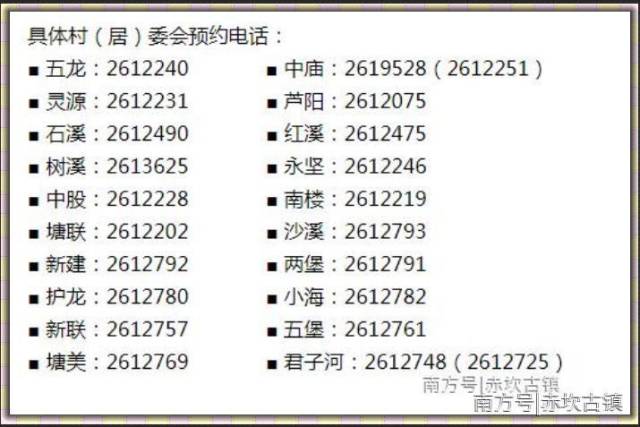 各村聯(lián)系方式詳見下表