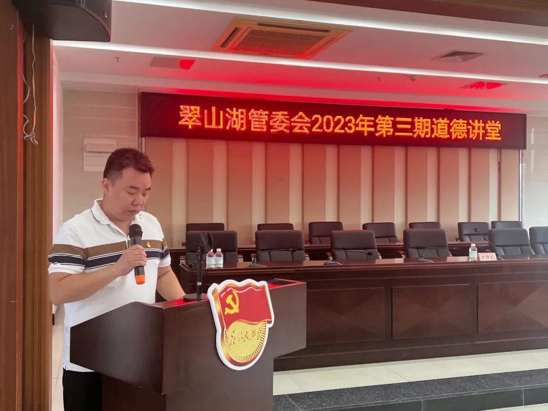 活動圍繞“七個一”有序開展,包括聽一首歌《說到做到》、看一段誠信主題微視頻、誦一段經(jīng)典國學(xué)詩文等方式,講述以“誠信立世”為核心的道德精神。通過此次道德講堂活動,全體黨員干部職工在參與中認(rèn)知、感悟道德觀念,提升個人道德修養(yǎng),推動形成以誠信為本、誠信待人、誠信工作、和睦共存的良好氛圍,倡導(dǎo)做人做事誠實守信,激勵黨員干部職工自省吾身,做誠實守信人,樹誠實守信家風(fēng),更好的傳承中華優(yōu)秀傳統(tǒng)文化,并將繼續(xù)為翠山湖園區(qū)高質(zhì)量發(fā)展作出更大貢獻(xiàn)。