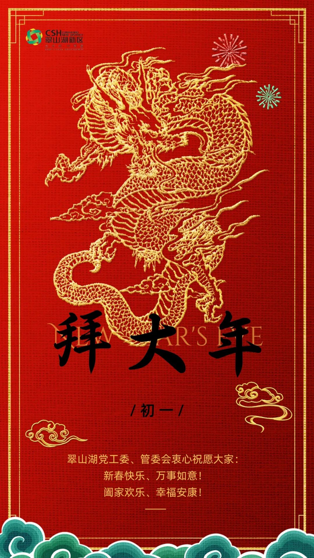 歡歌笑語辭舊歲,龍騰虎躍鬧新春!值此新春佳節(jié),翠山湖黨工委、管委會向全市人民、企業(yè)客商、社會各界,致以新春的祝福!恭賀新禧迎新春,龍騰四海送吉祥;玉兔留下一年運,金龍祝您萬事興;新年總有新氣象,萬象更新?lián)Q新顏!