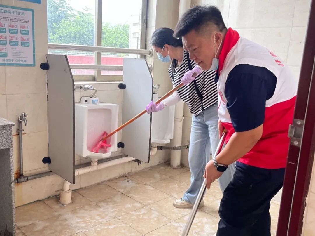 在校園內,志愿者們分工合作,分片區細致排查校園內每一處角落,認真清理花槽里的垃圾、樹下草叢枯葉、教學樓衛生死角、操場積水、下水道堵塞物等一切有可能孳生蚊蟲的隱患點,全力阻隔蚊媒傳播鏈。