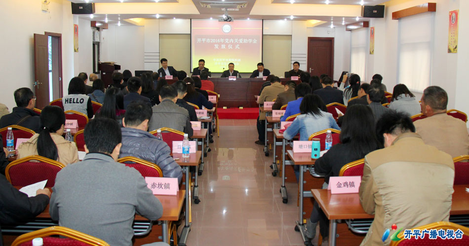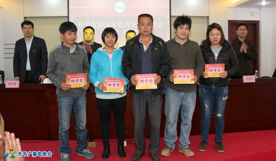 【開平廣播電視臺 余映意】12月2日上午,開平市舉行2016年黨內關愛助學金發放儀式,向全市40戶特殊困難黨員子女開展助學幫扶,發放助學金達10.9萬元。開平市委常委、組織部部長陳軍凱出席發放儀式。