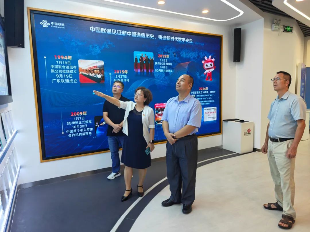 黃大勇一行首先參觀了江門聯通公司的職工俱樂部與5G數字化創新體驗中心。在職工俱樂部,大家實地感受了企業的特色文化建設,以及企業管理中的人文關懷。在5G數字化創新體驗中心,通過講解員的細致介紹和多媒體展示,參觀人員深入了解了中國聯通在5G技術、數字鄉村、智慧農業等領域的創新成果與實踐案例。其中,數字鄉村平臺在基層治理、便民服務等方面的應用,為赤水鎮鄉村振興及基層治理工作提供了寶貴的借鑒思路,雙方就技術落地細節展開了初步交流。