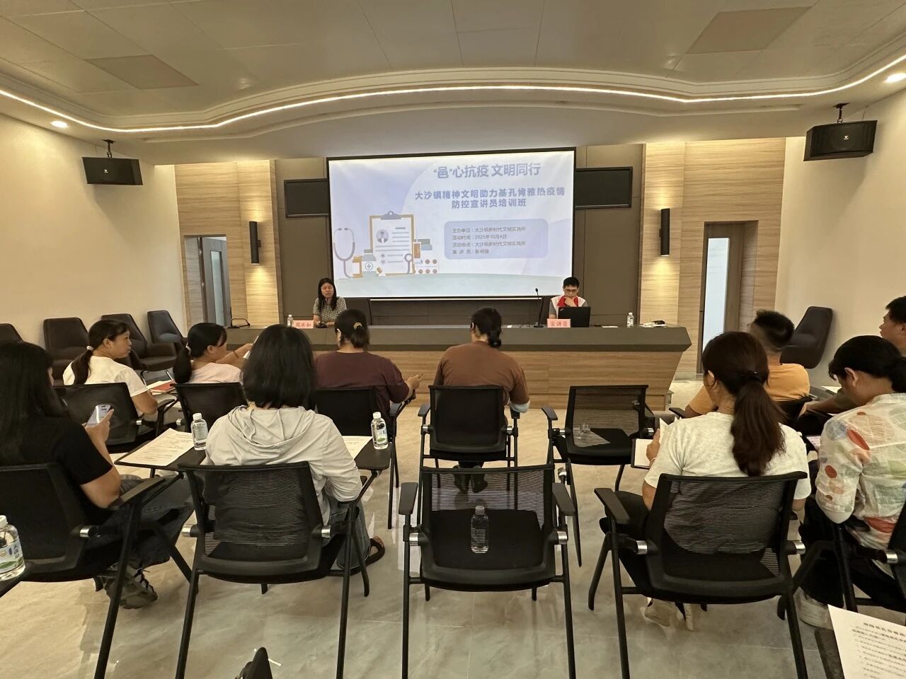 為進(jìn)一步提升廣大干部群眾疫情防控意識,掌握疫情防控知識,形成疫情防控自覺,大沙鎮(zhèn)新時代文明實(shí)踐所協(xié)同鎮(zhèn)各文明實(shí)踐站組建鎮(zhèn)村兩級防疫宣講團(tuán),并于10月4日舉辦精神文明助力基孔肯雅熱疫情防控宣講培訓(xùn)班,進(jìn)一步提升宣講員宣講能力水平。鎮(zhèn)黨委委員周冰如主持培訓(xùn)。