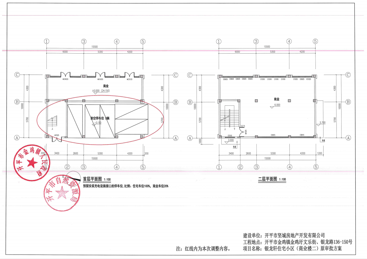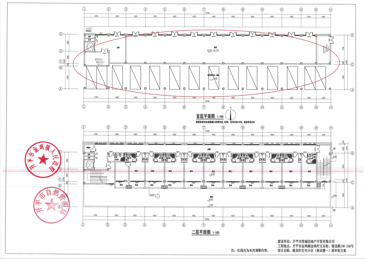 關于開平市金雞鎮金雞圩文樂街、銀龍路136-150號銀龍軒住宅小區項目報建圖調整的公示