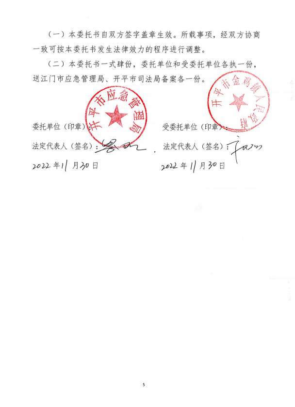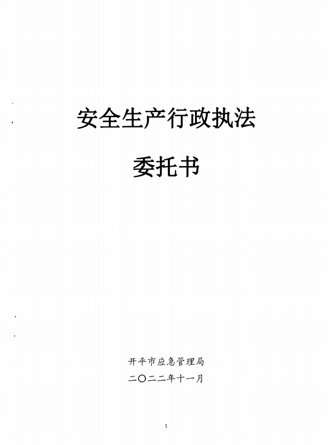 開平市安全生產行政執法委托書