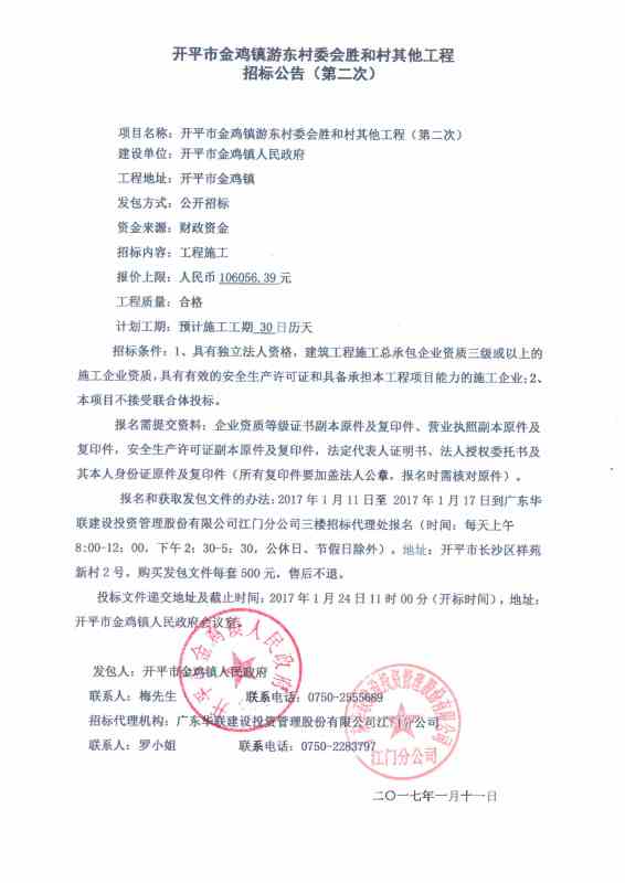 開平市金雞鎮游東村委會勝和村其它工程(第二次)