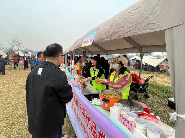 活動現(xiàn)場,人頭攢動,商機(jī)涌動。開平市婦聯(lián)副主席陳月嫦、金雞鎮(zhèn)婦聯(lián)主席張向明深入金雞鎮(zhèn)“巾幗巧廚娘”展位,與巧廚娘們親切交流,仔細(xì)詢問家糍“手工石臼捶打”的傳統(tǒng)工藝、粽子“僑鄉(xiāng)秘制咸甜餡料”的調(diào)配訣竅,以及各類產(chǎn)品的市場銷售情況,鼓勵(lì)大家深耕本土資源、深挖僑鄉(xiāng)文化內(nèi)涵,持續(xù)擦亮“金雞優(yōu)品”品牌,以巾幗智慧和巧手匠心為鄉(xiāng)村振興、為“百縣千鎮(zhèn)萬村高質(zhì)量發(fā)展工程”注入源源不斷的活力。此外,她們主動擔(dān)當(dāng)“開平優(yōu)品推薦官”,向現(xiàn)場游客生動講述產(chǎn)品背后的僑鄉(xiāng)故事與創(chuàng)業(yè)歷程,熱情推介手工捶打家糍、粽葉裹香粽子、顆粒飽滿的金黃玉米等優(yōu)質(zhì)農(nóng)產(chǎn)品,獨(dú)特風(fēng)味與深厚文化底蘊(yùn)吸引不少游客駐足聆聽、踴躍選購。