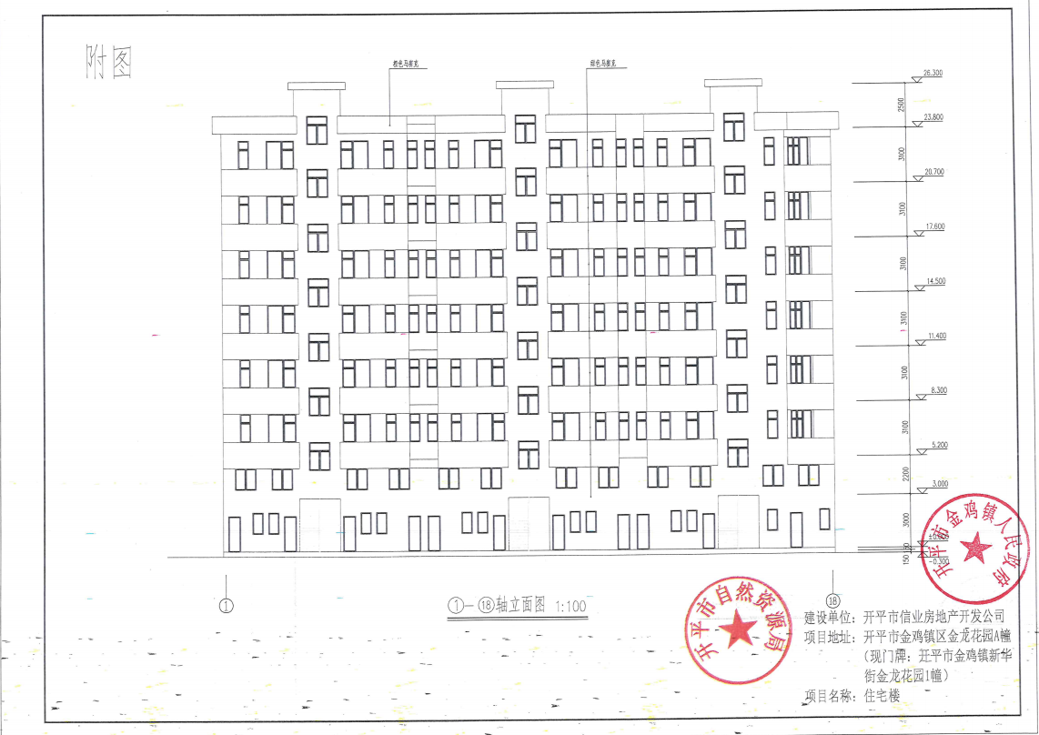 關于開平市金雞鎮(zhèn)區(qū)金龍花園 A、B幢住宅樓建筑設計方案和圖紙的公示