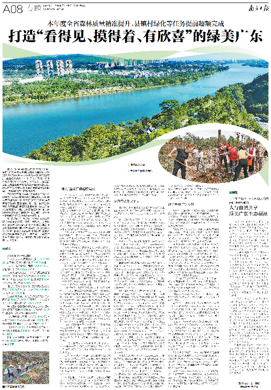 8月15日是全國生態日。目前,廣東今年全省完成森林質量精準提升357.99萬畝(其中林分優化提升213.53萬畝、森林撫育提升144.46萬畝),縣鎮村綠化種植苗木2108.2萬株。在今年上半年提前超額完成全年度林分優化提升任務的基礎上,綠美廣東生態建設的兩項關鍵數據仍在不斷攀升,全省綠化造林的熱情不減。 自2022年底,《中共廣東省委關于深入推進綠美廣東生態建設的決定》審議通過以來,森林質量精準提升等“六大行動”不斷推進,多項關鍵生態指標顯著向好。如今的廣東大地,多樣的森林類型、豐富的濕地環境不僅為廣東1.2億常住人口創造良好的居住環境,更為逾6600種野生高等植物、近1100種陸生野生脊椎動物和超12000種昆蟲提供家園。 從“綠起來”到“美起來”,綠美廣東生態建設帶來的變化正切實惠及廣大群眾。從粵北的廣袤森林,到粵東粵西的綿長海岸,再到珠三角的森林城市群,森林質量的悄然變化不僅美了環境,更創造了致富增收新機遇,生態產品及其價值實現方式進一步豐富——綠美廣東生態建設“看得見、摸得著、有欣喜”的愿景逐步走進現實。 《南方日報》專版報道 “綠美”重點任務超額完成 今年以來,廣東以“超額完成,看得見、摸得著、有欣喜”為要求,加速推進森林質量精準提升和綠美廣東生態建設示范點、示范帶建設,帶動提升城鄉綠化美化水平。截至8月初,廣東已完成林分優化提升213.53萬畝,森林撫育提升144.46萬畝,完成新造林撫育131.25萬畝;市、縣、鎮新增綠化面積32003.3畝、新增綠化帶長度5358.1公里;對全省122個縣區、1609個圩鎮、2.65萬個行政村進行綠化,計劃種植苗木1235.7萬株,目前已種植2108.2萬株,超額完成計劃任務。完成高速公路出入口綠化品質提升超100處,國省道綠化品質提升超1000公里。 兩項重要工作的提前完成,離不開林木種苗的有效保障。截至7月中旬,全省已落實苗木6703.71萬株,超量完成任務;落實苗木單位128家,其中保障性苗圃65家,有力保障2024年林分優化任務苗木需求。 此外,省林業局、省農墾總局、省農業農村廳推進8個總規模1200畝儲備能力120萬株的優質苗木儲備基地建設,截至7月中旬,共采購儲備苗木約91.35萬株,儲備基地基礎設施建設也在有序開展。共安排各地各單位優質苗木約75.93萬株,進一步優化和保障縣鎮村綠化苗木供應。 城鄉綠化美化,群眾可感可知。目前,全省已建設森林鄉村39個、綠美古樹鄉村15個、綠美紅色鄉村16個。全省共有古樹名木85561株,其中一級古樹770株,二級古樹4822株,三級古樹79888株,名木81株。計劃建設古樹公園20個、古樹搶救復壯瀕危古樹250株。目前已建設古樹公園3個、搶救復壯古樹112株。 堅持“興綠”也為群眾打通“兩山”轉化致富路。廣東穩步推進集體林權制度改革,貫徹落實《深化集體林權制度改革方案》,研究制定出臺《廣東省深化集體林權制度改革實施方案》,創新公益林利用管理和林業發展用地保障,著力打造油茶、竹子、林草中藥材、花卉苗木、家具加工、香料香精、生態旅游、森林康養等林業產業集群,打造“粵林+”特色品牌;配套出臺《綠美廣東生態建設財政激勵政策》《廣東省省級以上公益林結合森林質量分類差異化補償方案》,按計劃下達2023年綠美廣東生態建設激勵資金1.08億元,省級以上公益林平均補償標準提高至47元/畝。 省林業局相關負責人介紹,下半年是開展森林撫育的重要時間。省林業局將進一步加大造林綠化督導力度,督促各地落實綠美廣東生態建設重點任務項目資金,嚴格按序時進度開展造林撫育工作,確保9月底前全面完成森林撫育提升任務。 “同時,緊密配合省委組織部、省交通、住建、農業農村廳等部門,加強對各地縣鎮村綠化工作指導,抓好縣鎮村綠化后期管護工作。”該負責人說。 其中,森林防火和林業有害生物防治是完成森林撫育、守護綠美廣東生態建設成果的重要舉措。今年上半年,出動近23萬人次開展森林防火工作,全省整改火災隱患2134處,整改森林安全隱患1483處;松材線蟲病等林業有害生物防治作業面積超過400萬畝次,查處林業植物檢疫違法案件23宗。 在此基礎上,2024年度全省計劃建設生物防火林帶1809.269公里,造林面積達53804.07畝,將進一步完善我省森林防火基礎設施建設。全省全年林業有害生物成災率控制在26.71‰以下,并以薇甘菊五年防治行動、紅火蟻防控行動以及互花米草三年防治實施方案為指引,推動各地抓好防治時機,認真組織實施2024年防治項目,積極協動相關部門及經營主體,形成聯防聯治合力。 示范帶動效果明顯 漫步于廣州市增城區的荔韻公園綠美廣東生態建設示范點(下稱“示范點”),步道平緩,綠樹參天,增江碧水從腳下流過,為暑期創造別一番清涼。 該公園的改造歷經1年有余,相關工作自2023年初啟動以來,當地陸續將受松材線蟲病侵害的松林改造為鄉土闊葉林,并增設步道等設施,方便市民游玩;往年義務植樹種下的南洋楹等樹木經精心養護,與新栽的樹木互相掩映,自成一景;園內的圣皇洲島改造為鳥類棲息地,目前已發現幾十種鳥類。 荔韻公園的改造,凝聚著綠美廣東生態建設“六大行動”的生動示范。目前,全省正指導各地加快示范點建設進度,重點推進郊野公園和山地公園建設,從實用和有利群眾生活出發,在示范點建設融入體育、健康、休閑、旅游、實習等功能,使之成為人民群眾茶余飯后走進森