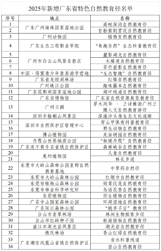 今年以來(lái),全省新建成34條特色自然教育徑,全省特色自然教育徑總數(shù)達(dá)到175條,超額完成了廣東省自然教育發(fā)展“十四五”規(guī)劃任務(wù)!據(jù)悉,廣東省特色自然教育徑主題多樣、覆蓋廣泛,總長(zhǎng)度超過(guò)300公里,開(kāi)發(fā)配套課程400余門,其中超過(guò)120條免費(fèi)向公眾開(kāi)放,為公眾提供豐富多樣的自然教育室外空間。 打造“自然+人文”特色路徑 “十四五”期間,廣東持續(xù)推進(jìn)自然教育場(chǎng)所體系建設(shè),全面完成來(lái)自然教育基地和自然教育徑建設(shè)目標(biāo)任務(wù),初步形成了覆蓋全省的多類型自然教育場(chǎng)所體系。 廣東省林業(yè)局相關(guān)負(fù)責(zé)人介紹:“新公布的廣東省特色自然教育徑在主題融合、課程體系與技術(shù)應(yīng)用領(lǐng)域均實(shí)現(xiàn)了提質(zhì)升級(jí),全線配備自然教育標(biāo)識(shí)系統(tǒng)和互動(dòng)體驗(yàn)設(shè)施,平均每條自然教育徑配套2門以上課程,較往年有明顯提升?!?/p> 值得一提的是,新增的自然教育徑更注重特色資源開(kāi)發(fā),通過(guò)融合生態(tài)環(huán)境、本土文化與藝術(shù)元素,持續(xù)深化“自然+人文”的融合發(fā)展格局,如廣州蘭圃人文自然教育游徑,為14株特色花木賦予“花中君子,將嶺南園林藝術(shù)與生態(tài)科普融合,打造了沉浸式人文自然體驗(yàn)場(chǎng)景。 推動(dòng)自然教育體系化發(fā)展 廣東特色自然教育徑以“技術(shù)賦能生態(tài)敘事、文化活化資源價(jià)值、實(shí)踐聯(lián)通保護(hù)行動(dòng)”為特色,構(gòu)建了立體自然教育體系。這些自然教育徑主題豐富,涵蓋動(dòng)植物保護(hù)、生態(tài)修復(fù)、森林文化、綠美實(shí)踐等領(lǐng)域,為公眾提供近距離接觸華南虎、穿山甲、黑臉琵鷺、紫紋兜蘭等珍稀動(dòng)植物的機(jī)會(huì),開(kāi)辟了公眾了解林業(yè)工作的重要窗口。 在實(shí)踐創(chuàng)新方面,深圳市自然保護(hù)區(qū)管理中心穿山甲保育徑通過(guò)仿生野外環(huán)境展現(xiàn)穿山甲自然行為,結(jié)合保育員對(duì)物種保護(hù)現(xiàn)狀的深度解說(shuō),有效引導(dǎo)公眾從自然觀察向主動(dòng)參與保護(hù)行動(dòng)轉(zhuǎn)化;丹霞山世界地質(zhì)公園的“秘境丹霞”自然教育徑通過(guò)動(dòng)態(tài)展示丹霞地貌的億年演化歷程,結(jié)合丹霞蘭等珍稀植物的保護(hù)實(shí)踐,實(shí)現(xiàn)了自然探索與生態(tài)認(rèn)知的有機(jī)融合。新一批自然教育徑充分運(yùn)用科技手段賦能生態(tài)教育,深度融合地方文化特色,創(chuàng)新實(shí)踐參與模式,為公眾提供了全方位、多層次的自然教育體驗(yàn)。 下一步,廣東將持續(xù)推進(jìn)自然教育建設(shè),為自然教育發(fā)展賦能,強(qiáng)化自然教育徑基礎(chǔ)建設(shè)、課程體系、講解服務(wù)等方面的能力,深挖地域生態(tài)人文資源,孵化精品課程,推動(dòng)自然教育徑與生態(tài)旅游、文化創(chuàng)意等產(chǎn)業(yè)的深度融合,為公眾提供更高質(zhì)量的自然教育服務(wù),打造具有粵港澳特色的一流自然教育品牌,講好綠美廣東故事,賦能綠美廣東生態(tài)建設(shè)。