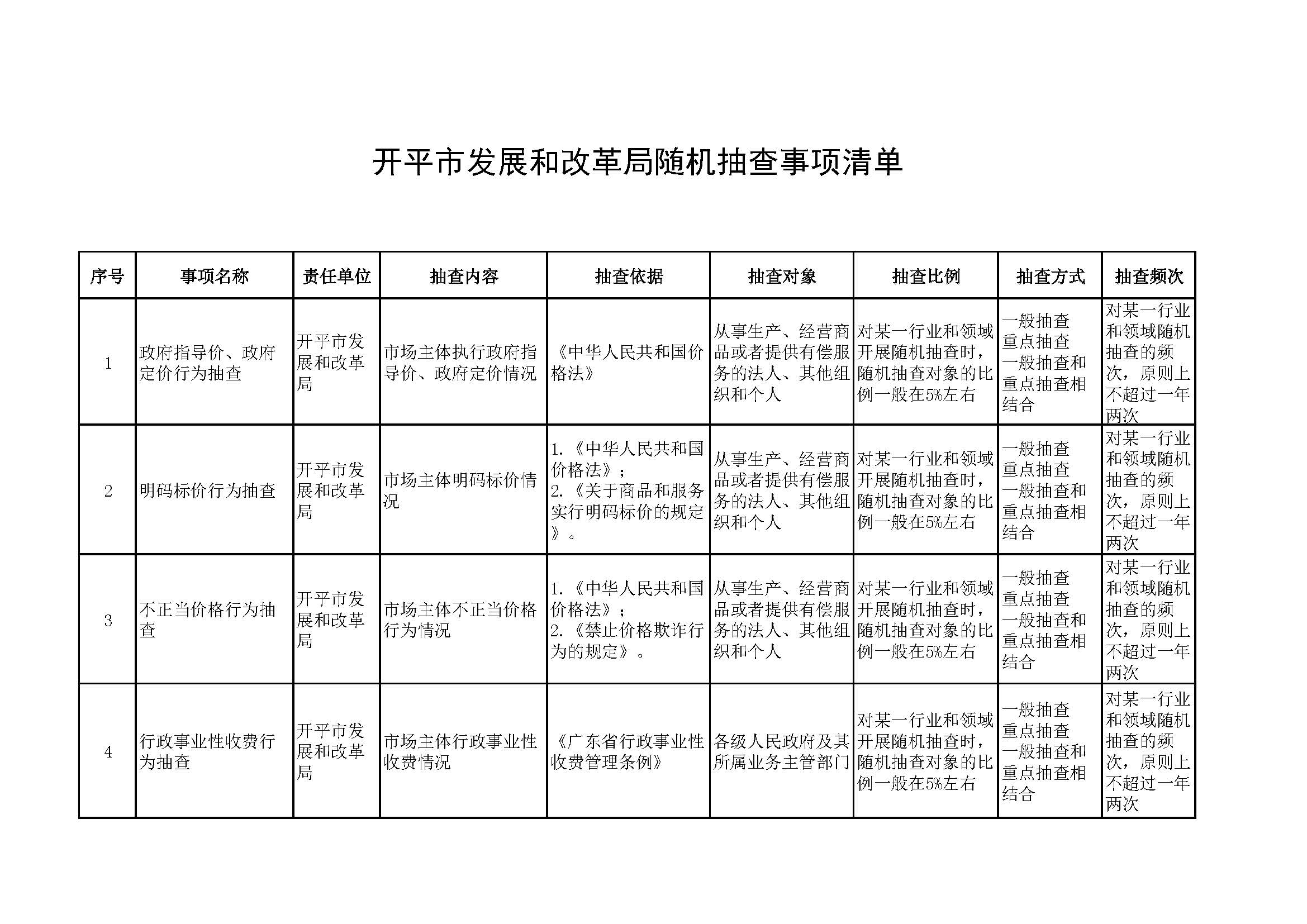 開平市發展和改革局隨機抽查事項清單