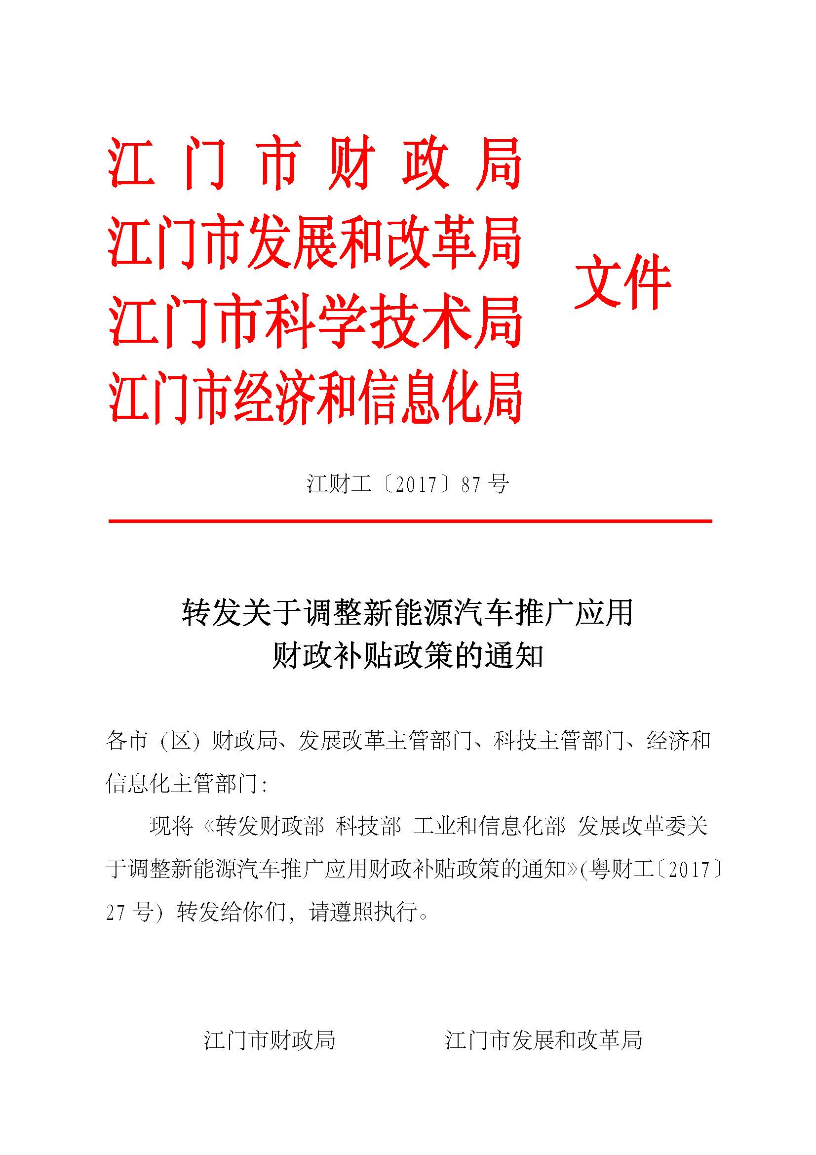 轉發關于調整新能源汽車推廣應用財政補貼政策的通知