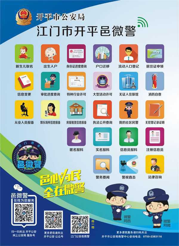 江門市開平邑微警是開平市公安局根據江門市公安局的統一部署通過微信平臺開通的網上公安局。
