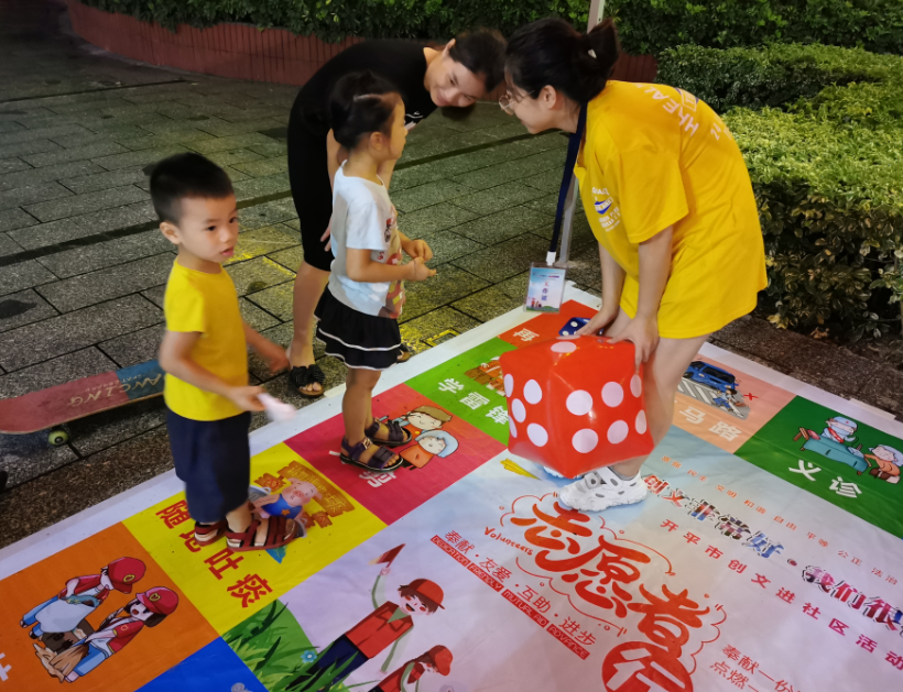 各式各樣的創(chuàng)文小游戲吸引了不少家長帶著小朋友前來參與,寓教于樂,通過游戲的方式傳播文明知識、提升市民文明素質(zhì)。