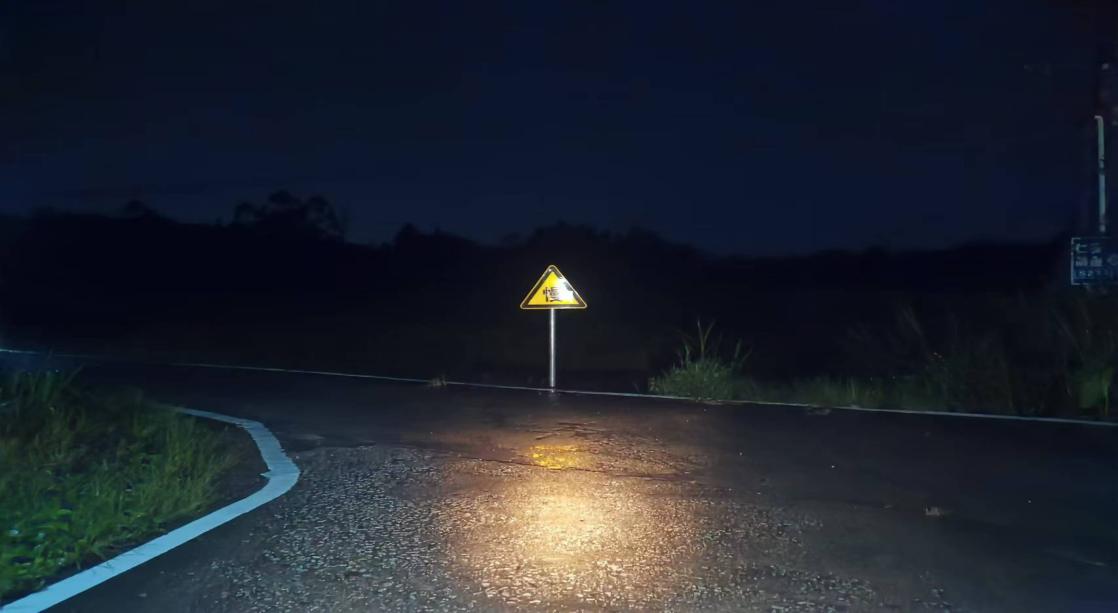 (增設(shè)反光型標(biāo)線+慢行警示牌夜間效果)