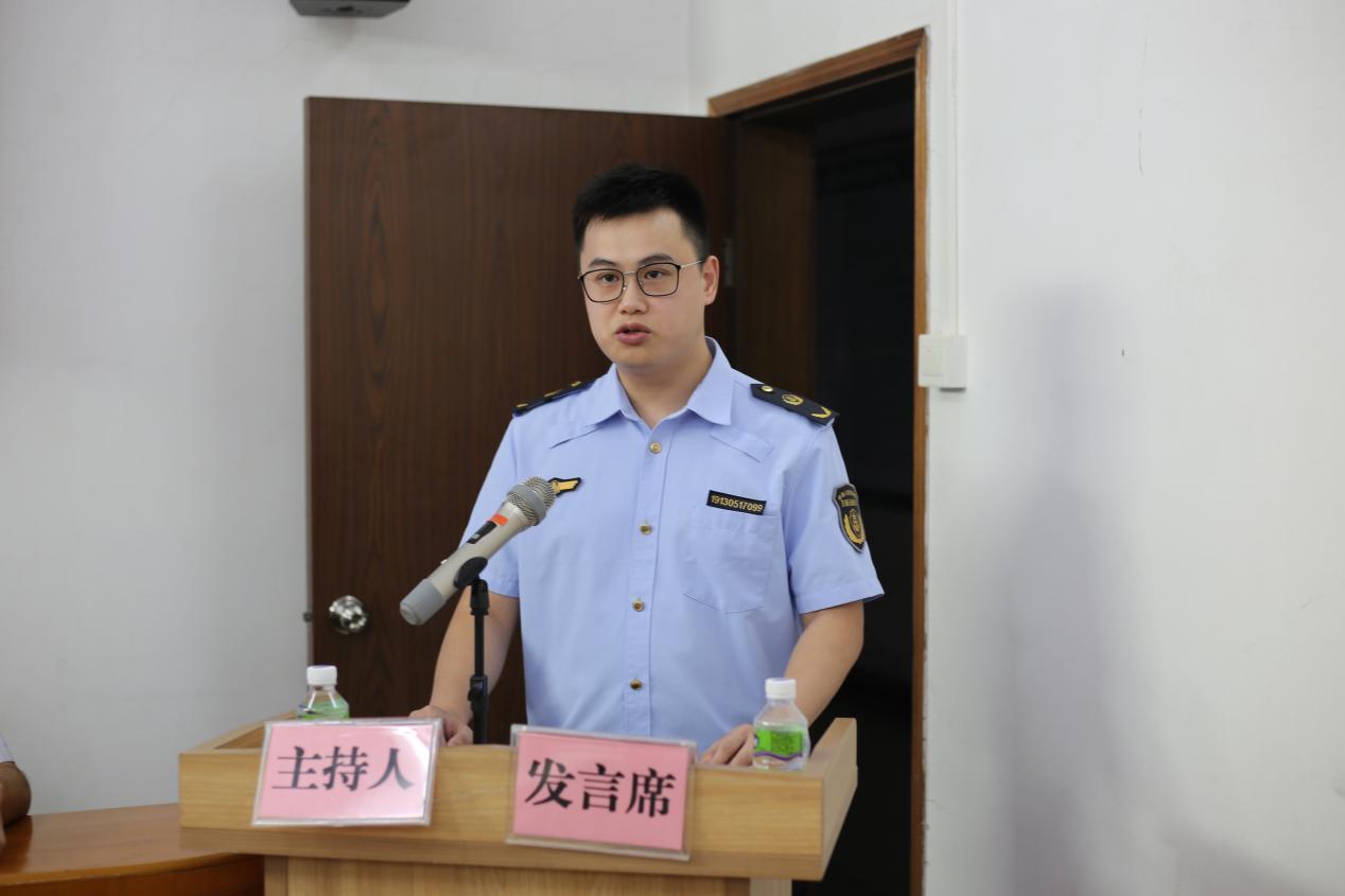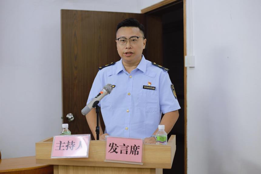(執(zhí)法刀鋒隊(duì)代表張杰彬作表態(tài)發(fā)言)