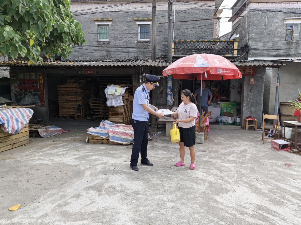 (交通運(yùn)輸局工作人員向商家宣傳路政文件單張)