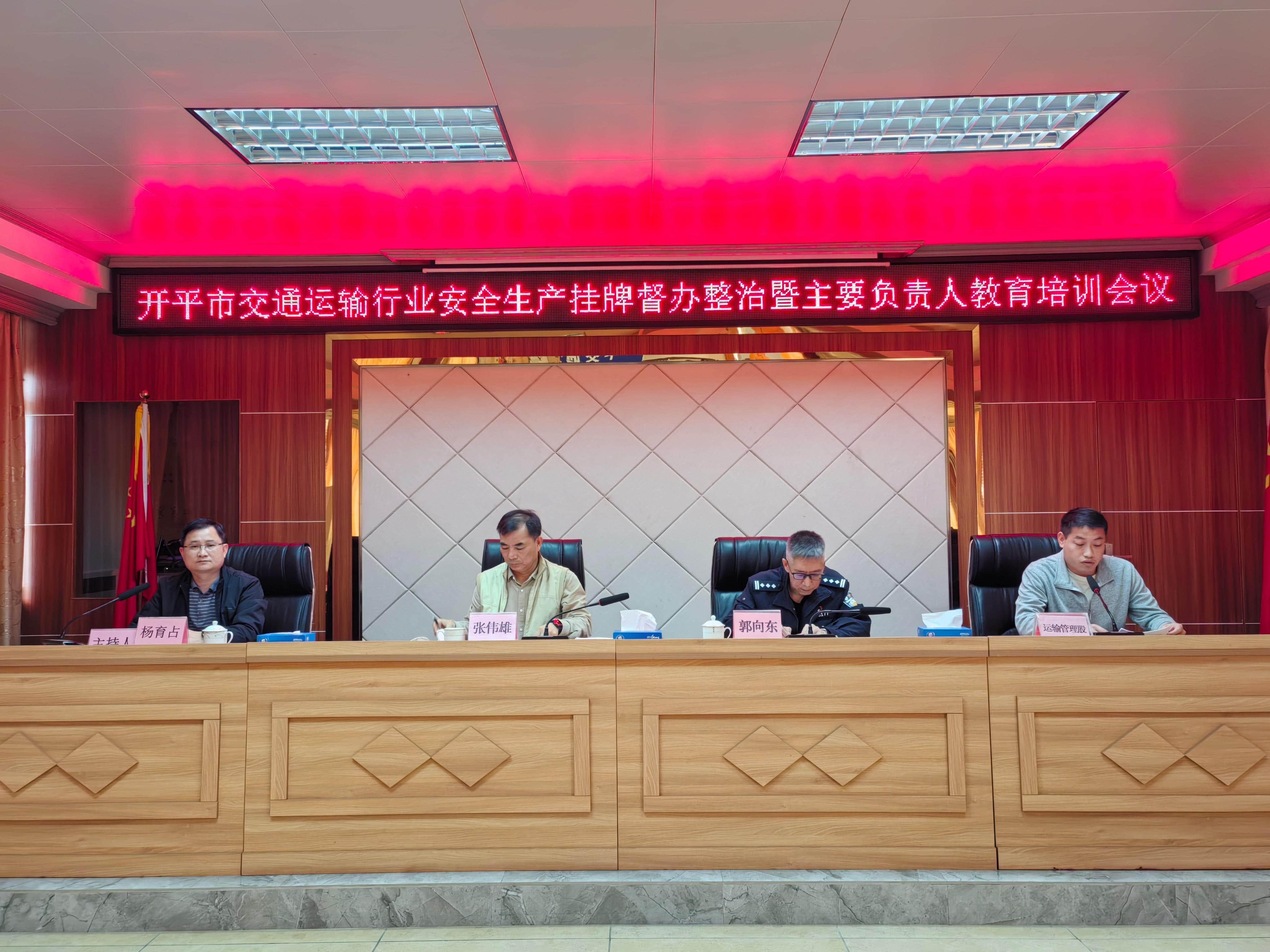 為進一步統籌推進我市交通運輸領域安全生產實施掛牌督辦整改工作,確保全市交通運輸行業安全生產、消防安全工作持續安全穩定,市交通運輸局于11月24日組織召開開平市交通運輸行業安全生產掛牌督辦整治暨主要負責人教育培訓會議。市交通運輸局張偉雄局長、楊育占副局長,相關股室、直屬單位,市公安局交管大隊以及各客運企業(含網約車)、客運站、城市公交企業、出租車企業、危險貨物運輸企業、10輛車以上的貨運企業、在建交通工程項目、水上運輸企業和港口碼頭企業等有關負責人共54人參加本次會議。
