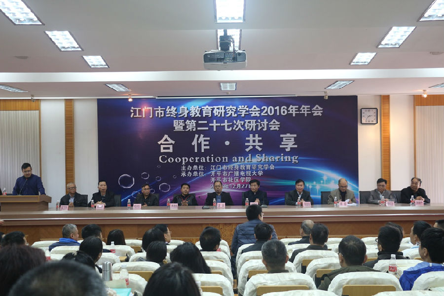 12月27日,研討會在開平社區學院隆重舉行。江門市教育局職成辦主任揭毅、江門四市三區廣播電視大學校長、開平市教育局黨委委員譚欽旋、職成辦主任朱林燦及各市(區)電大教師代表共80人應邀出席了會議。