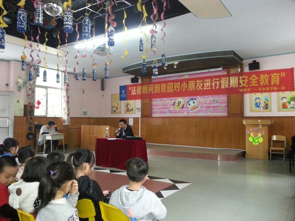 為了進一步加強法制安全知識宣傳教育,從小培養幼兒的法制觀念,增強幼兒假期安全意識。2017年1月11日下午,新昌幼兒園邀請幼兒園法律顧問、廣東省潭江律師事務所勞偉文律師為幼兒園大班級的師幼進行了“法制與假期安全教育”知識培訓。