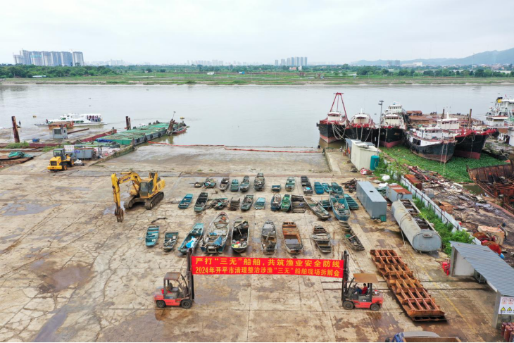 8月23日上午,開平市召開涉漁“三無”船舶拆解現場會,對前期依法查扣的33艘涉漁“三無”船舶進行集中拆解、銷毀,出動鉤機等機械設備對涉漁“三無”船舶進行碾壓、砸碎,并全過程記錄,確保清拆到位。 “三無”船舶,是指無船名船號、無船舶證書(無有效漁業船舶檢驗證書、船舶登記證書、捕撈許可證)、無船籍港的船舶,涉漁“三無”船舶是指從事捕撈作業及輔助活動的“三無”船舶。涉漁“三無”船舶存在巨大安全隱患,嚴重擾亂正常的漁業生產秩序,同時也加劇了漁業資源的衰退,對漁業資源造成極大危害,引發了眾多問題。 近年來,開平市農業農村局持續加大執法巡查力度,開展網格化巡查全覆蓋,對水上船舶實施全天候實時監管。不定期聯合海事、公安、街道辦等部門組成聯合執法組,開展聯合專項執法行動,嚴厲打擊涉漁“三無”船舶。據統計,今年以來累計開展各類專項執法行動59次,出動執法快艇127艘次,檢查船舶927艘次,查獲“三無”船舶11艘,有效遏制了涉漁“三無”船舶的增長勢頭,維護了漁業生產秩序和水上安全。 下一步,開平市農業農村局將進一步推動清理整治涉漁“三無”船舶工作常態化,持續保持執法高壓態勢,實現涉漁“三無”船舶動態清零,營造良好的水上生產安全氛圍。 江門市海洋綜合執法支隊相關同志、開平市農業農村局主要領導、分管領導、江門市開平海事處、開平市公安局、開平市財政局相關負責同志及相關鎮街分管領導參加現場會。