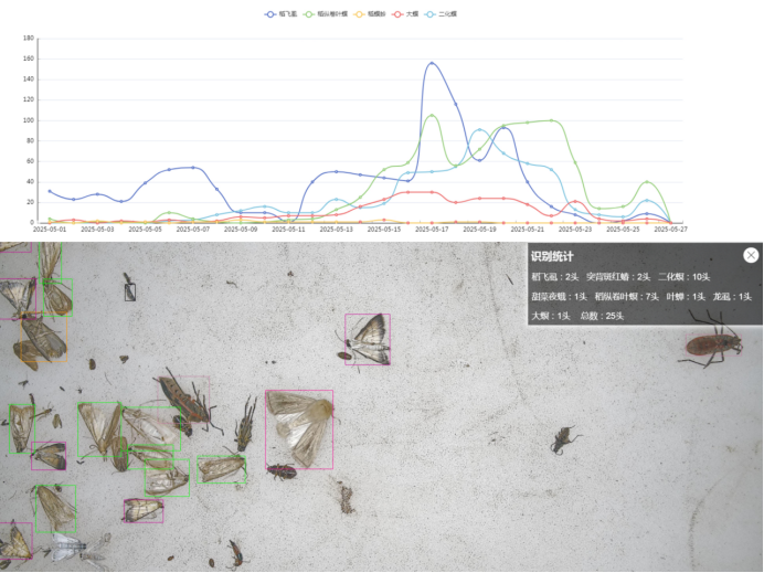 隨著農業現代化進程的加快,農作物病蟲害防治在農業生產中的作用變得越來越重要。那怎樣提高農藥利用率,保障糧食生產安全?又怎樣減少農藥使用量,保障農產品質量安全呢?近年來,開平市大力建設農作物病蟲害智能化監測體系,推廣植保無人機統防統治技術,“蟲臉識別”加“蟲口奪糧”,為“發展農業新質生產力”注入植保新力量。 科技賦能病蟲測報,“蟲臉識別”顯身手 “這是我們各個病蟲害智能監測點的實時數據,在電腦界面上就能清晰地展示出害蟲的照片、名稱、數量……”開平市農業綜合服務中心植保員打開電腦上的病蟲害物聯網數據分析系統,點擊相關選項后,就能清晰地看到一個圖文一體的畫面,其中不但有實時拍攝的害蟲照片,旁邊還附有害蟲種類和數量,十分精準。這是我市積極推動農作物病蟲害智能化監測體系建設的成果之一。 病蟲測報是農作物病蟲害防控的‘偵察兵’,想讓病蟲害防控更科學,就必須提供更精準的預測預報。當下,刷臉解鎖、刷臉支付等人臉識別技術已進入大眾的生活,把這一項刷臉技術用在“蟲臉”上,就是我們開展農作物病蟲害智能化監測體系建設的有力探索。“蟲臉識別”是一種基于人工智能圖像識別和檢測技術,讓系統自動識別照片中害蟲種類和數量的病蟲害測報手段,經由拍攝、上傳、分析、反饋等環節,植保人員和種田大戶可以快速了解農田內的病蟲害情況。 “蟲臉識別”2022年開始走入開平市的田間地頭。開平市農業綜合服務中心通過統籌各級資金、申請上級項目、合理選點布點等措施著力推動全市農作物病蟲害智能化監測體系建設。截至2024年,全市建成農作物病蟲害智能化監測點7個、性誘監測點13個,保有農作物病蟲害智能化監測設備48臺,包含智能性誘設備、智能燈誘設備、智能色誘設備、苗情監測設備、墑情監測設備、農田小氣候監測設備等,監測預警體系進一步完善。通過智能化監測和日常人工調查監測有機結合,我市農作物病蟲害短時預警準確率達到95%以上,能夠指導不同鄉鎮開展針對性科學防治,農作物病蟲監測預警的能力和水平得到全面提升。 要守護水稻健康安全生長,除了要病蟲測得準,還要防得好。 智能防控病蟲為害,“蟲口奪糧”保豐收 我們走進長沙街道民強村的水稻田間,田里的水稻生長進入了幼穗分化期,一片生機盎然的景象,伴隨著旋翼聲響,一架植保無人機在飛手的操作下騰空而起,沿著稻田勻速前行,霧化農藥從機身下的噴淋系統緩緩傾灑,均勻施向稻田,短短十幾分鐘,數畝稻田已經完成施藥,整個防治過程快捷高效。 “今天天氣好,非常適合無人機作業,趁著這個天氣噴灑農藥,有助于提高農藥利用率、提升防治效果。”植保技術員對記者說。“以前我們都是采用人工打藥,人力費用高、效率低且用藥量大,現在有了植保無人機,一天能完成200多畝的防治面積,農藥用量也大大減少,確實能節本增效。”開平市供銷優禾農服公司負責人說道。 我市2025年早造水稻種植面積29.69萬畝,當前早造水稻生長已普遍進入幼穗分化期,同時也是稻縱卷葉螟、稻飛虱、鉆蛀性螟蟲、紋枯病及稻瘟病等病蟲害防治的關鍵時期,植保無人機統防統治技術的應用為病蟲防治上了“高效保險”,是實現“抓早治小”的關鍵手段。近年來,我市積極推廣病蟲害植保無人機統防統治技術,通過購買服務、農機補貼、服務補貼等方式鼓勵社會化服務主體積極參與病蟲害統防統治服務行動,預計今年年底統防統治覆蓋率將提升至60%左右,持續推動我市農業種植智能化、高效化,打好“蟲口奪糧”保衛戰,護好群眾的“米袋子”。