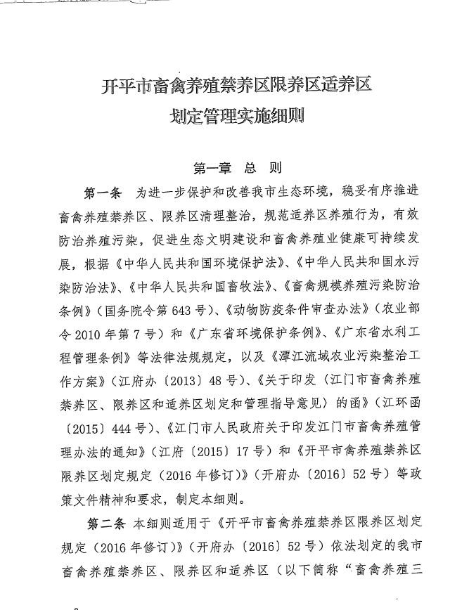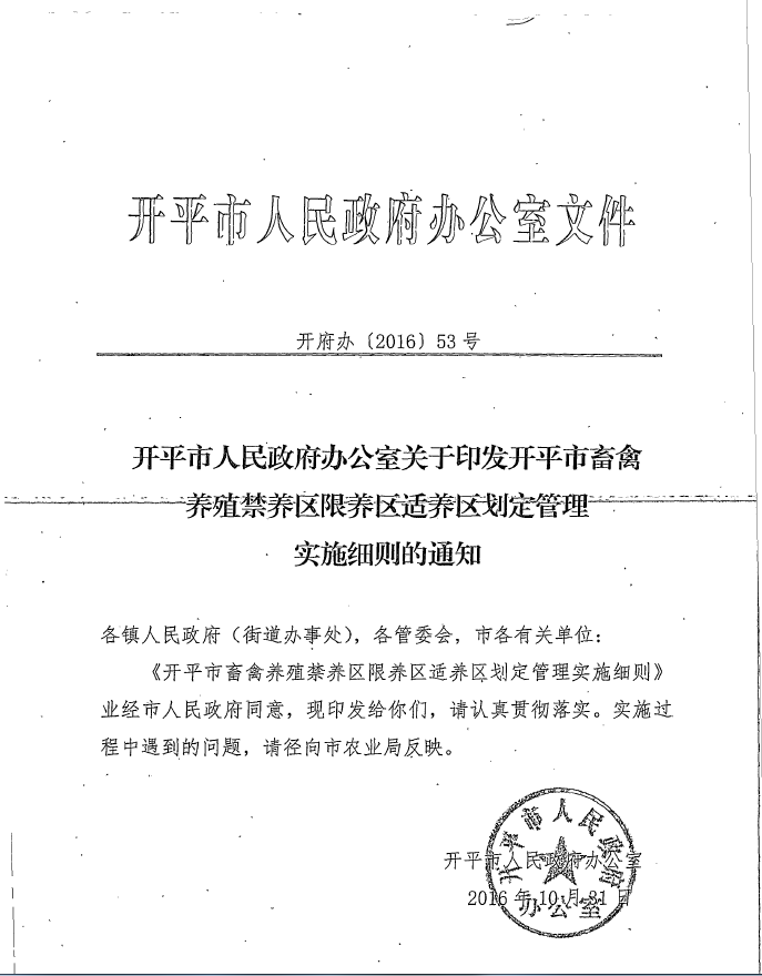 關于印發開平市畜禽養殖禁養區限養區適養區劃定管理實施細則的通知