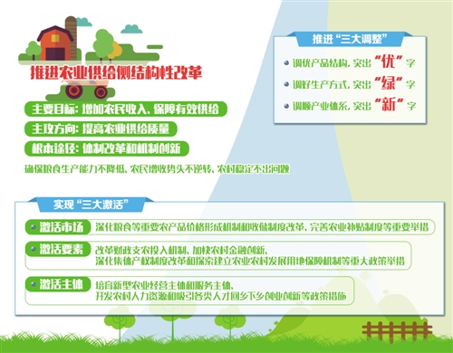 中國經(jīng)濟網(wǎng)北京2月5日訊 《中共中央國務院關于深入推進農(nóng)業(yè)供給側(cè)結構性改革加快培育農(nóng)業(yè)農(nóng)村發(fā)展新動能的若干意見》今天發(fā)布,這是新世紀以來指導“三農(nóng)”工作的第十四份中央一號文件。   文件全文約12000字,共分6個部分33條,包括:優(yōu)化產(chǎn)品產(chǎn)業(yè)結構,著力推進農(nóng)業(yè)提質(zhì)增效;推行綠色生產(chǎn)方式,增強農(nóng)業(yè)可持續(xù)發(fā)展能力;壯大新產(chǎn)業(yè)新業(yè)態(tài),拓展農(nóng)業(yè)產(chǎn)業(yè)鏈價值鏈;強化科技創(chuàng)新驅(qū)動,引領現(xiàn)代農(nóng)業(yè)加快發(fā)展;補齊農(nóng)業(yè)農(nóng)村短板,夯實農(nóng)村共享發(fā)展基礎;加大農(nóng)村改革力度,激活農(nóng)業(yè)農(nóng)村內(nèi)生發(fā)展動力。   文件指出,推進農(nóng)業(yè)供給側(cè)結構性改革,要在確保國家糧食安全的基礎上,緊緊圍繞市場需求變化,以增加農(nóng)民收入、保障有效供給為主要目標,以提高農(nóng)業(yè)供給質(zhì)量為主攻方向,以體制改革和機制創(chuàng)新為根本途徑,優(yōu)化農(nóng)業(yè)產(chǎn)業(yè)體系、生產(chǎn)體系、經(jīng)營體系,提高土地產(chǎn)出率、資源利用率、勞動生產(chǎn)率,促進農(nóng)業(yè)農(nóng)村發(fā)展由過度依賴資源消耗、主要滿足量的需求,向追求綠色生態(tài)可持續(xù)、更加注重滿足質(zhì)的需求轉(zhuǎn)變。   文件強調(diào),推進農(nóng)業(yè)供給側(cè)結構性改革是一個長期過程,處理好政府和市場關系、協(xié)調(diào)好各方面利益,面臨許多重大考驗。必須直面困難和挑戰(zhàn),堅定不移推進改革,勇于承受改革陣痛,盡力降低改革成本,積極防范改革風險,確保糧食生產(chǎn)能力不降低、農(nóng)民增收勢頭不逆轉(zhuǎn)、農(nóng)村穩(wěn)定不出問題。 中共中央國務院關于深入推進農(nóng)業(yè)供給側(cè)結構性改革加快培育農(nóng)業(yè)農(nóng)村發(fā)展新動能的若干意見   經(jīng)過多年不懈努力,我國農(nóng)業(yè)農(nóng)村發(fā)展不斷邁上新臺階,已進入新的歷史階段。農(nóng)業(yè)的主要矛盾由總量不足轉(zhuǎn)變?yōu)榻Y構性矛盾,突出表現(xiàn)為階段性供過于求和供給不足并存,矛盾的主要方面在供給側(cè)。近幾年,我國在農(nóng)業(yè)轉(zhuǎn)方式、調(diào)結構、促改革等方面進行積極探索,為進一步推進農(nóng)業(yè)轉(zhuǎn)型升級打下一定基礎,但農(nóng)產(chǎn)品供求結構失衡、要素配置不合理、資源環(huán)境壓力大、農(nóng)民收入持續(xù)增長乏力等問題仍很突出,增加產(chǎn)量與提升品質(zhì)、成本攀升與價格低迷、庫存高企與銷售不暢、小生產(chǎn)與大市場、國內(nèi)外價格倒掛等矛盾亟待破解。必須順應新形勢新要求,堅持問題導向,調(diào)整工作重心,深入推進農(nóng)業(yè)供給側(cè)結構性改革,加快培育農(nóng)業(yè)農(nóng)村發(fā)展新動能,開創(chuàng)農(nóng)業(yè)現(xiàn)代化建設新局面。    推進農(nóng)業(yè)供給側(cè)結構性改革,要在確保國家糧食安全的基礎上,緊緊圍繞市場需求變化,以增加農(nóng)民收入、保障有效供給為主要目標,以提高農(nóng)業(yè)供給質(zhì)量為主攻方向,以體制改革和機制創(chuàng)新為根本途徑,優(yōu)化農(nóng)業(yè)產(chǎn)業(yè)體系、生產(chǎn)體系、經(jīng)營體系,提高土地產(chǎn)出率、資源利用率、勞動生產(chǎn)率,促進農(nóng)業(yè)農(nóng)村發(fā)展由過度依賴資源消耗、主要滿足量的需求,向追求綠色生態(tài)可持續(xù)、更加注重滿足質(zhì)的需求轉(zhuǎn)變。    推進農(nóng)業(yè)供給側(cè)結構性改革是一個長期過程,處理好政府和市場關系、協(xié)調(diào)好各方面利益,面臨許多重大考驗。必須直面困難和挑戰(zhàn),堅定不移推進改革,勇于承受改革陣痛,盡力降低改革成本,積極防范改革風險,確保糧食生產(chǎn)能力不降低、農(nóng)民增收勢頭不逆轉(zhuǎn)、農(nóng)村穩(wěn)定不出問題。    2017年農(nóng)業(yè)農(nóng)村工作,要全面貫徹黨的十八大和十八屆三中、四中、五中、六中全會精神,以鄧小平理論、“三個代表”重要思想、科學發(fā)展觀為指導,深入貫徹習近平總書記系列重要講話精神和治國理政新理念新思想新戰(zhàn)略,堅持新發(fā)展理念,協(xié)調(diào)推進農(nóng)業(yè)現(xiàn)代化與新型城鎮(zhèn)化,以推進農(nóng)業(yè)供給側(cè)結構性改革為主線,圍繞農(nóng)業(yè)增效、農(nóng)民增收、農(nóng)村增綠,加強科技創(chuàng)新引領,加快結構調(diào)整步伐,加大農(nóng)村改革力度,提高農(nóng)業(yè)綜合效益和競爭力,推動社會主義新農(nóng)村建設取得新的進展,力爭農(nóng)村全面小康建設邁出更大步伐。    一、優(yōu)化產(chǎn)品產(chǎn)業(yè)結構,著力推進農(nóng)業(yè)提質(zhì)增效    1.統(tǒng)籌調(diào)整糧經(jīng)飼種植結構。按照穩(wěn)糧、優(yōu)經(jīng)、擴飼的要求,加快構建糧經(jīng)飼協(xié)調(diào)發(fā)展的三元種植結構。糧食作物要穩(wěn)定水稻、小麥生產(chǎn),確保口糧絕對安全,重點發(fā)展優(yōu)質(zhì)稻米和強筋弱筋小麥,繼續(xù)調(diào)減非優(yōu)勢區(qū)籽粒玉米,增加優(yōu)質(zhì)食用大豆、薯類、雜糧雜豆等。經(jīng)濟作物要優(yōu)化品種品