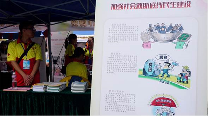 “僑鄉社工宣傳周”活動現場 3月21日江門市扶貧辦與江門市民政部門借助江門市第六屆“僑鄉社工宣傳周”活動場地,向廣大市民宣傳我市城鄉精準扶貧工作。 活動當天,前來江門市工人文化宮參與活動的市民絡繹不絕。江門市扶貧辦與江門市民政局的同志熱情地向市民群眾宣傳、講解江門市城鄉精準扶貧工作的相關政策及2016年度江門市扶貧工作成果,現場派發了宣傳單。市民紛紛點贊,認為江門市出臺的精準扶貧政策接地氣、解民困,切切實實為貧困群體解決生產生活的難題。 自2016年開展城鄉精準扶貧工作以來,江門市扶貧部門通過各級幫扶單位精準幫扶,江門市有勞動能力的重點幫扶對象5097戶16659人生產生活條件得到很大改善。其中,重點幫扶對象1429戶實現了精準脫貧。 精準扶貧宣傳攤位 工作人員向市民講解扶貧工作并派發精準扶貧宣傳單