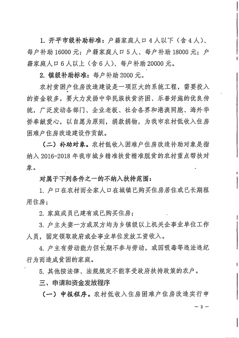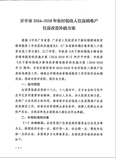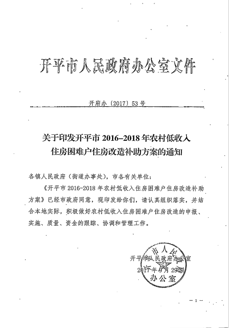 開府辦〔2017〕53號關(guān)于印發(fā)開平市2016-2018年農(nóng)村低收入住房困難戶住房改造補助方案的通知