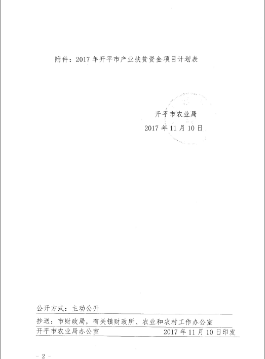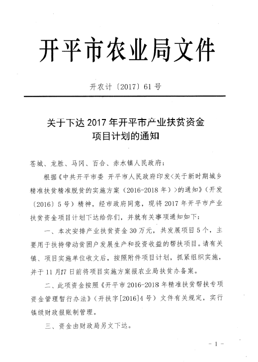 關(guān)于下達(dá)2017年開(kāi)平市產(chǎn)業(yè)扶貧資金項(xiàng)目計(jì)劃的通知