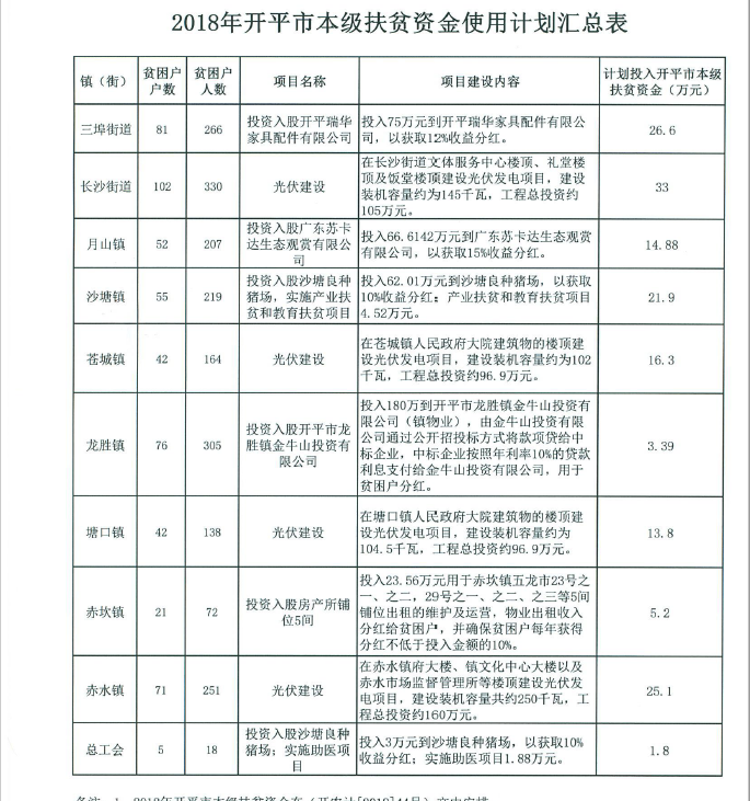 開農計[2018]68號關于2018年江門本級扶貧資金使用計劃的批復