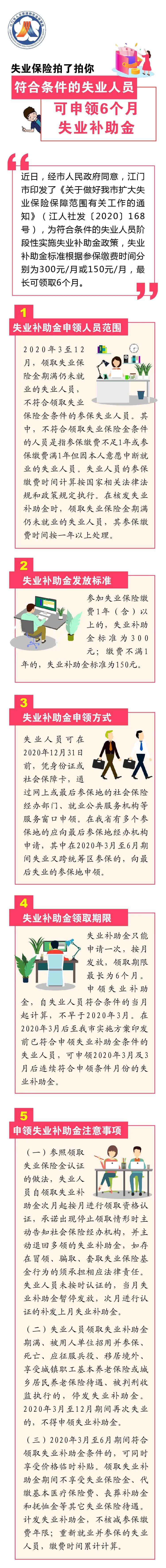 【擴散周知】江門市符合條件的失業人員可申領6個月失業補助金