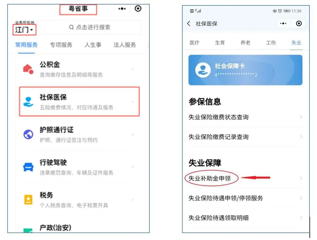 申領截止時間:2020年12月31日 12月31日、12月31日、12月31日截止 申領條件 ①2020年3月至12月,領取失業(yè)保險金期滿仍未就業(yè)的失業(yè)人員; ②2020年3月至12月,不符合領取失業(yè)保險金條件的參保人失業(yè)人員(指參保繳費不足1年或繳費滿1年但本人辭職等本人原因失業(yè))。 申領渠道、步驟 不用跑腿!!!失業(yè)補助金申領無需現(xiàn)場辦理,通過廣東省網(wǎng)辦平臺(http://hrss.gd.gov.cn/gdsbfw/)、“粵省事”微信小程序等全程線上辦理, 方便快捷。 ①省網(wǎng)辦平臺:廣東省人力資源和社會保障廳網(wǎng)中的“廣東社保服務”專欄(http://hrss.gd.gov.cn/gdsbfw/) →社會保險網(wǎng)上個人服務(注冊或登錄) 失業(yè)待遇→ 失業(yè)補助金申領 →失業(yè)補助金申領 進入失業(yè)補助金申領頁面,選擇【受理】按鈕,校驗通過后可填寫相關信息并點擊【提交】按鈕進行網(wǎng)上申報。 ②“粵省事”小程序:微信搜索 “粵省事”微信小程序→社保醫(yī)保→失業(yè)→失業(yè)保障→失業(yè)補助金申領,圖例如下: