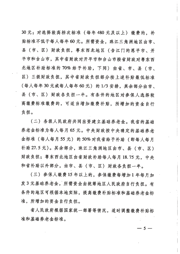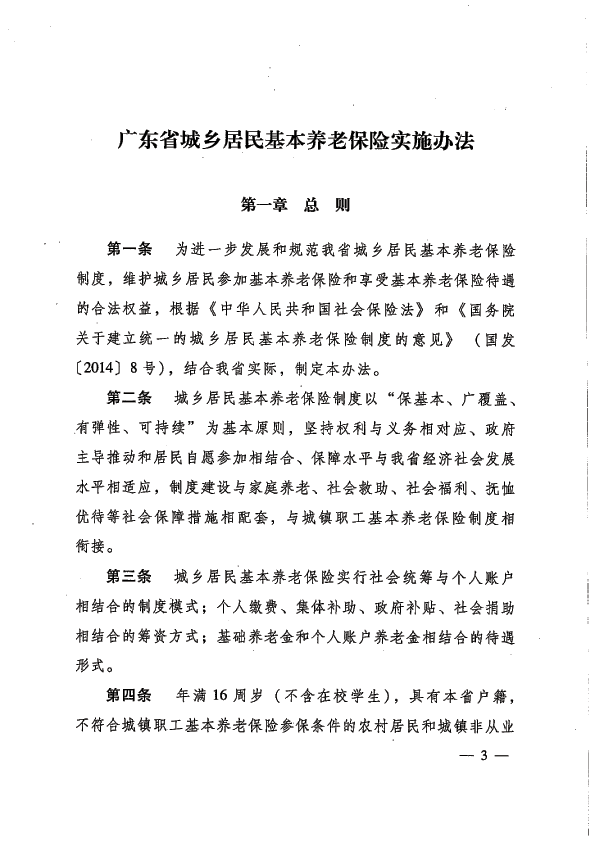 廣東省城鄉居民基本養老保險實施辦法-粵府[2014]37號