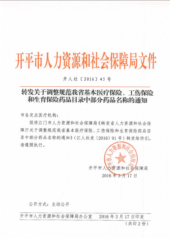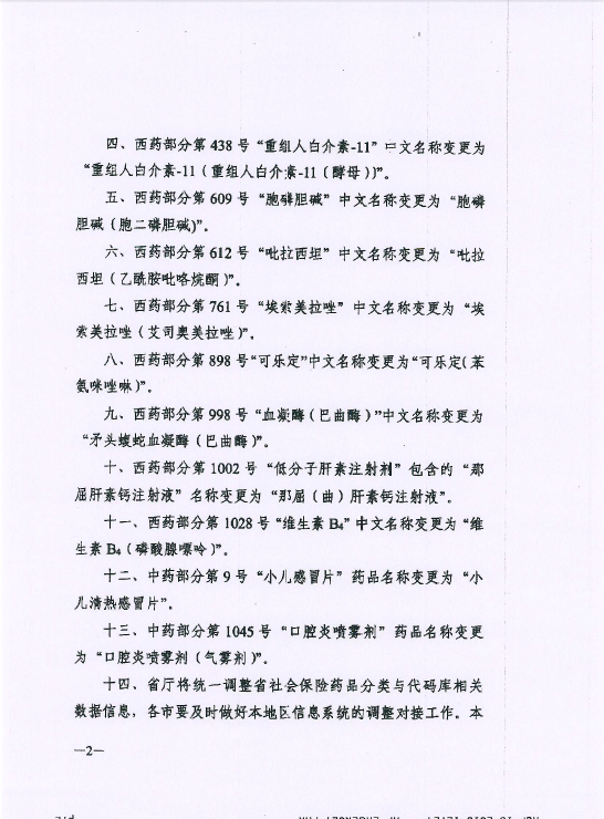 轉發關于調整規范我省基本醫療保險、工傷保險和生育保險藥品目錄中部分藥品名稱的通知