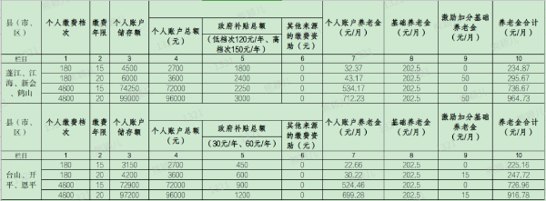 城鄉居民養老保險各檔次繳費與待遇領取對比參考