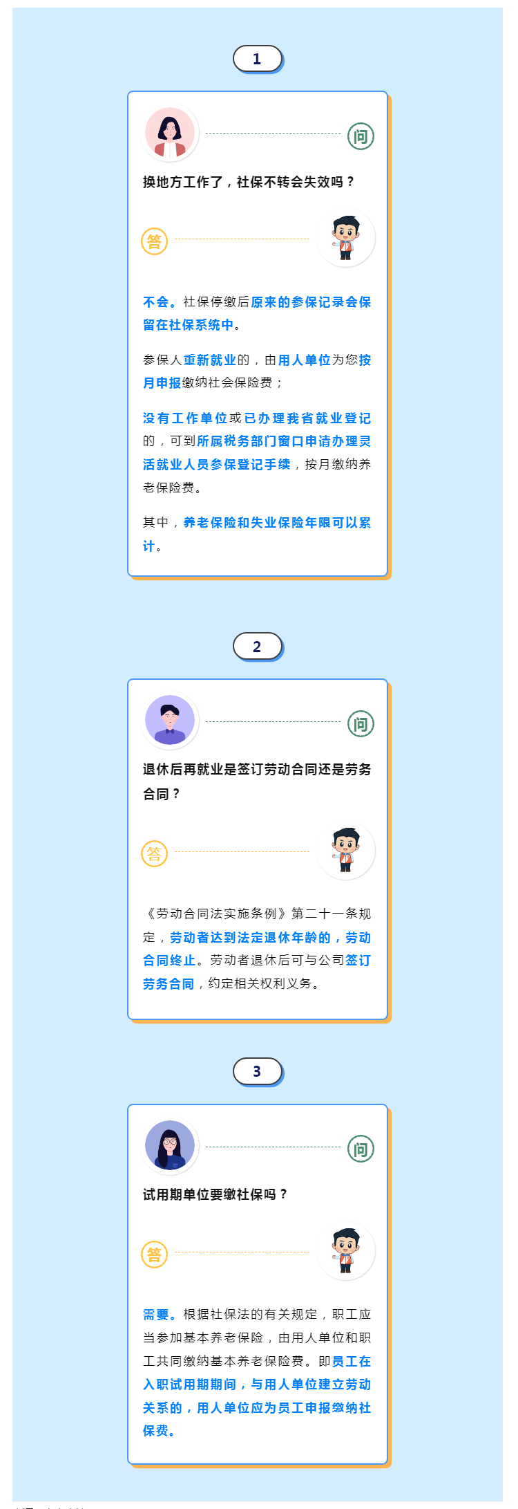 【人社普法速遞 | 第一百九十一期】換地方工作了,社保不轉會失效嗎?退休后再就業是簽訂勞動合同還是勞務合同?試用期單位要繳社保嗎?