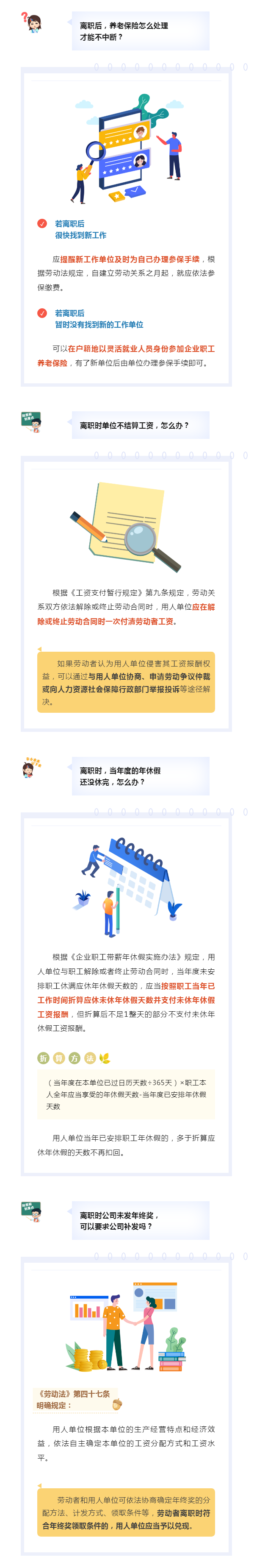 【人社普法速遞 | 第一百九十四期】離職時,養老保險、工資、年休假怎么處理?