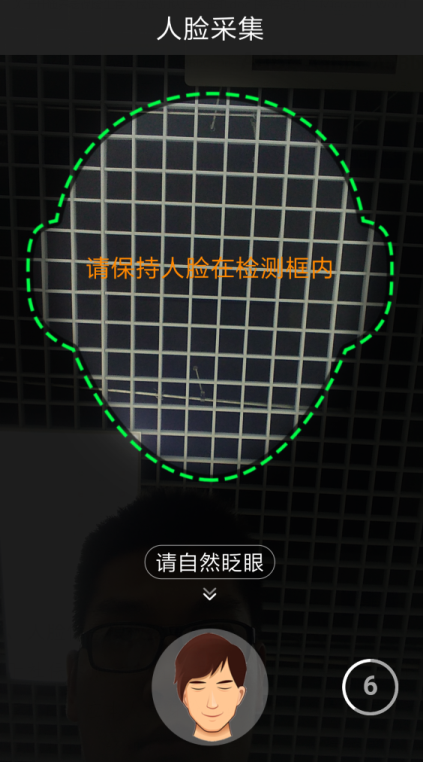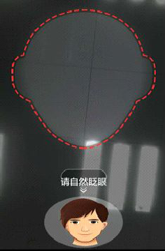3.進(jìn)入資格認(rèn)證后,請將臉對準(zhǔn)頭像框,盡量使臉完全納入頭像框,根據(jù)語音提示和下圖中人的動(dòng)作,完成人臉檢測。