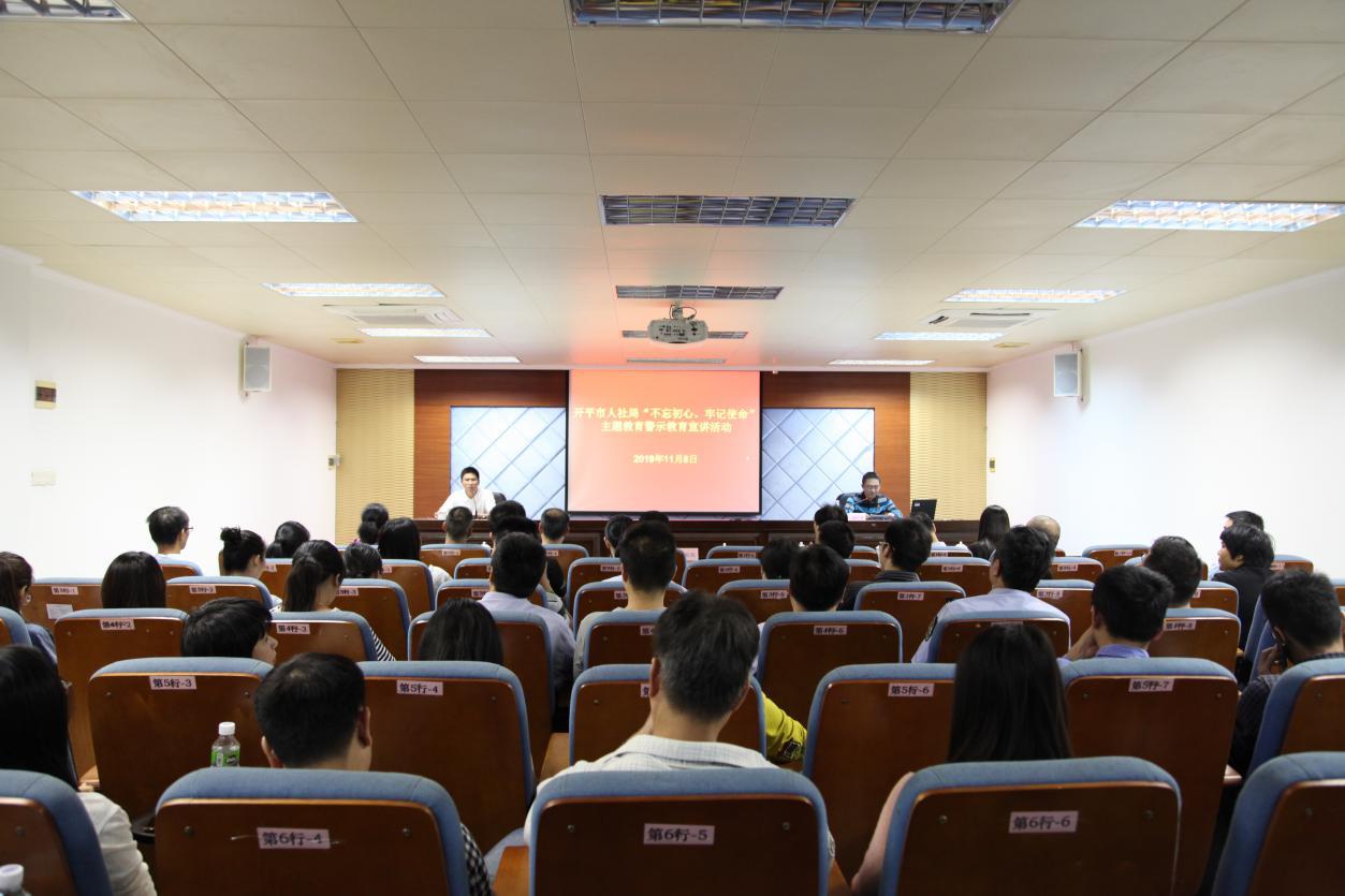 為扎實推進開平市“不忘初心、牢記使命”主題教育警示教育,切實引導黨員干部知敬畏、存戒懼、守底線,筑牢拒腐防變思想防線。11月8日下午,市人社局舉辦“不忘初心、牢記使命”主題教育警示教育宣講會。市人社局第一、第二黨支部、社保局現(xiàn)職黨支部黨員以及市殘聯(lián)相關領導同志共70多人參加宣講會。