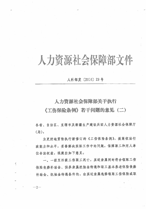 轉發關于執行《工傷保險條例》若干問題的意見(二)的通知